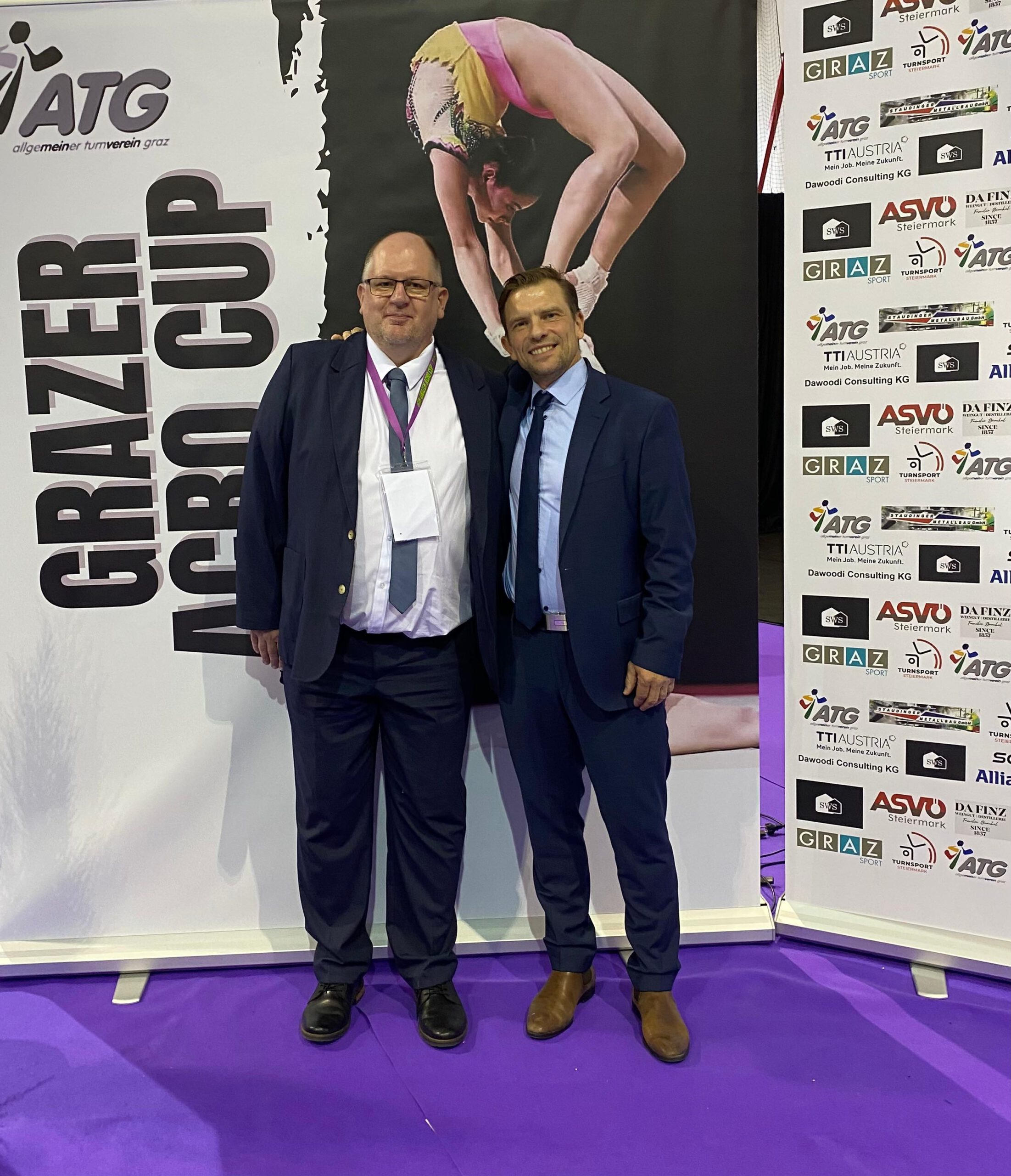 Am vergangenen Mittwoch machte sich eine kleine Delegation des TSR Olympia Wilhelmshaven mit der Deutschen Bahn auf den Weg in die Steiermark nach Graz, um am 6. Internationalen Acro Cup teilzunehmen. Mit dabei waren das Seniorinnen-Damenpaar Mira Spieß und Charlotte Kallai, das Herrenpaar (12–18) Thorne Spieß und Leevi Hamacher, die Kampfrichter Sascha Meyer und Timo Spieß sowie Cheftrainerin Silke Spieß.