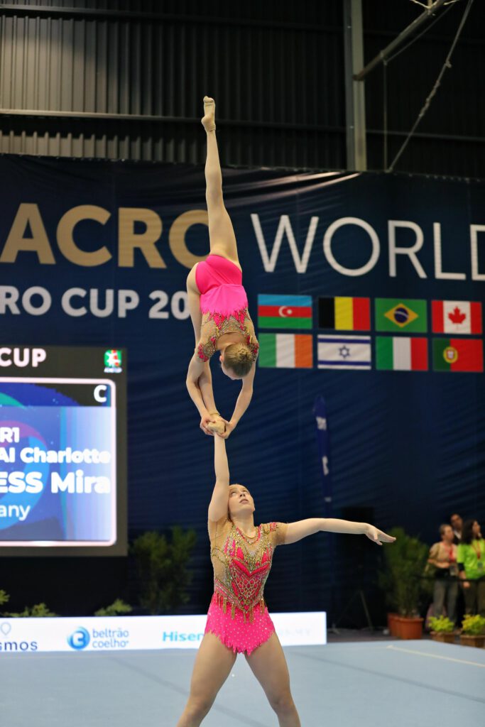 Bereits am Vortag hatten die beiden Sportakrobatinnen ihre Dynamikübung gezeigt. Dort lief allerdings nicht alles nach Plan: Mehrere Fehler verhinderten eine höhere Wertung, sodass am Ende 22.790 Punkte auf der Anzeigetafel standen.
