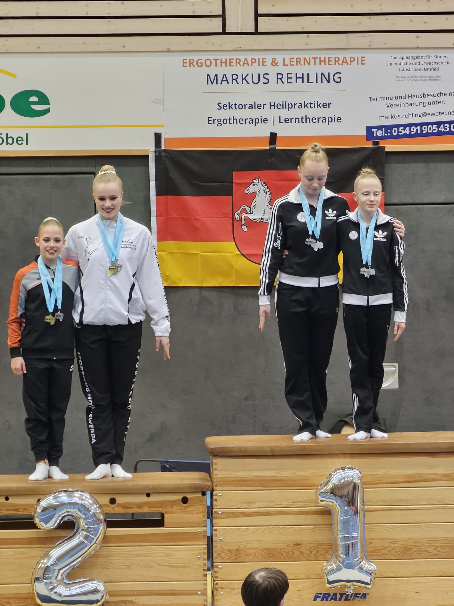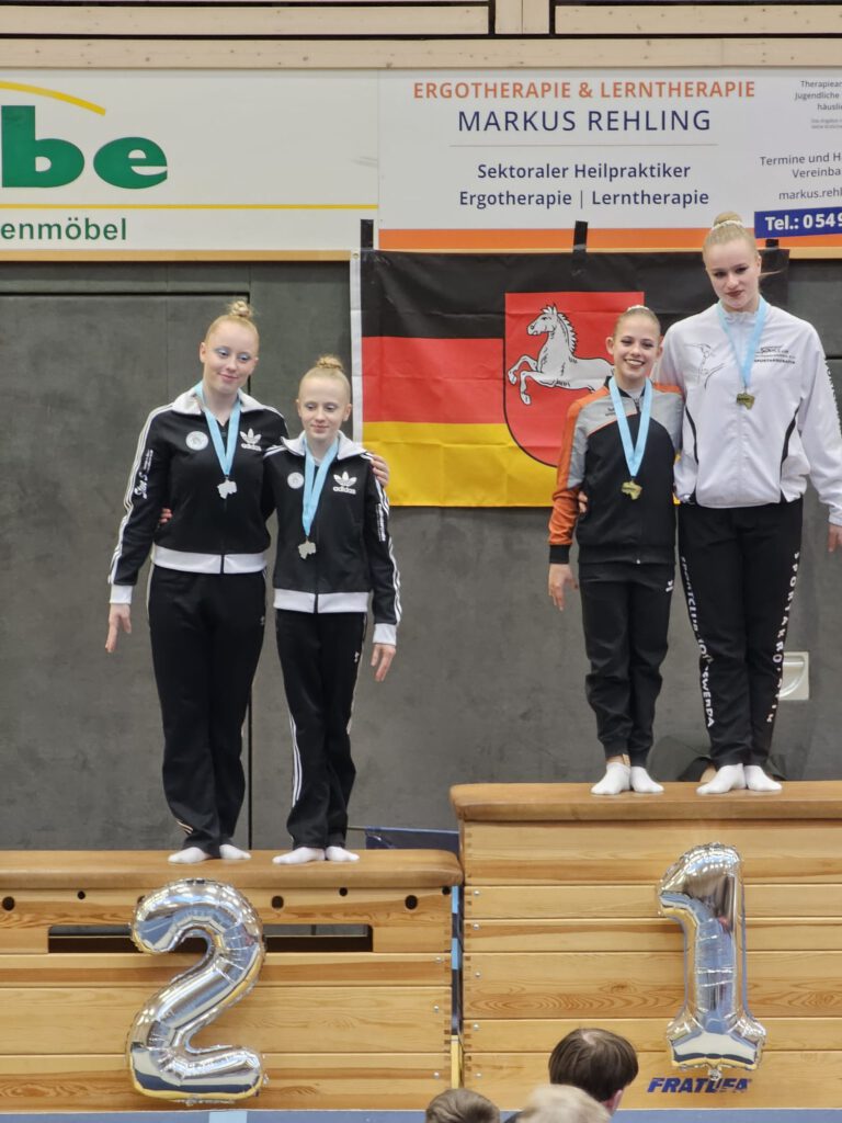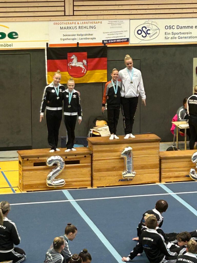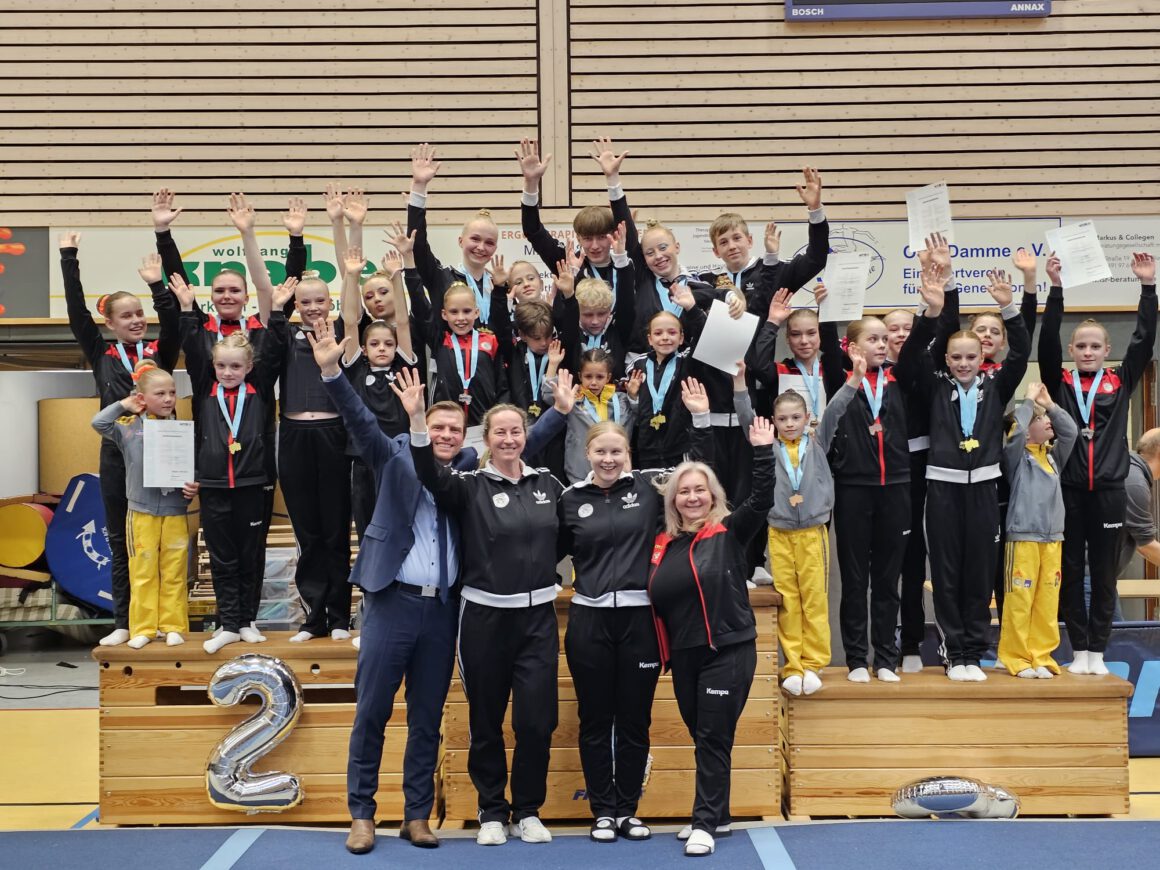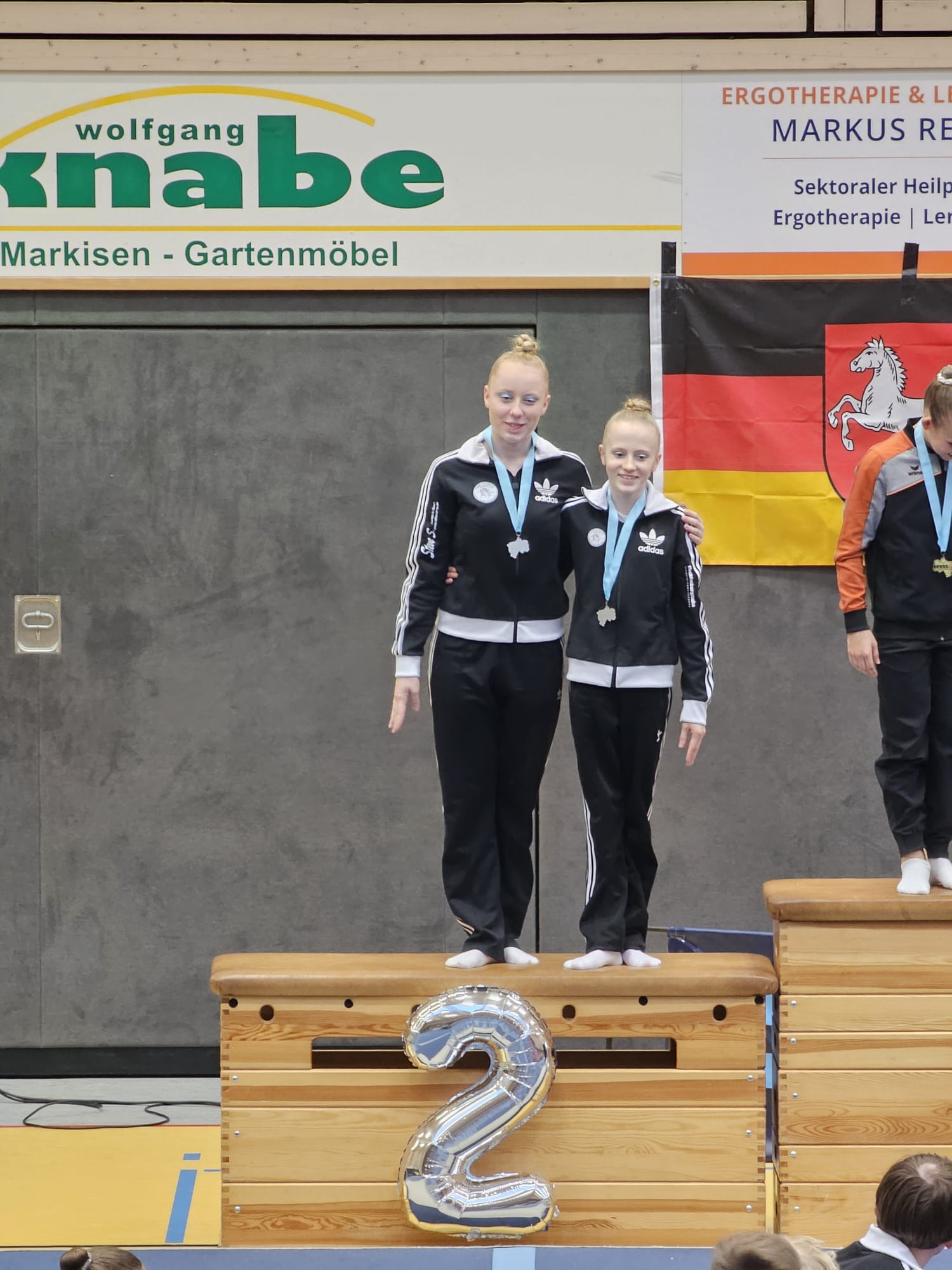 Im Seniorenbereich kam es schließlich zum erwarteten Duell auf Topniveau mit dem VfL Weiße Elf Nordhorn. Während Nordhorn die Balance für sich entschied, konterte Wilhelmshaven in der Dynamik: Charlotte Kallai und Mira Spieß gewannen mit herausragenden 26,150 Punkten. Auch in der Gesamtwertung setzte sich der TSR durch und sicherte sich den Titelgewinn.