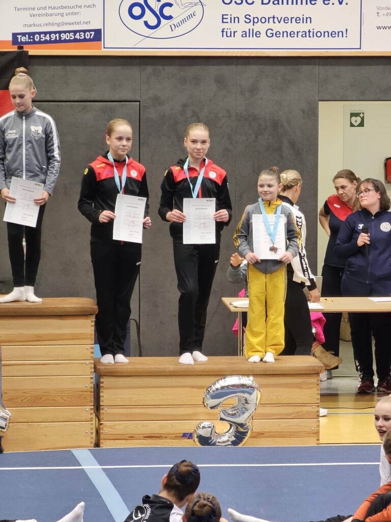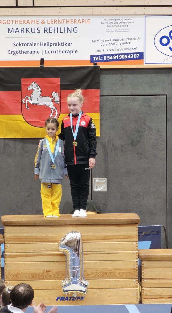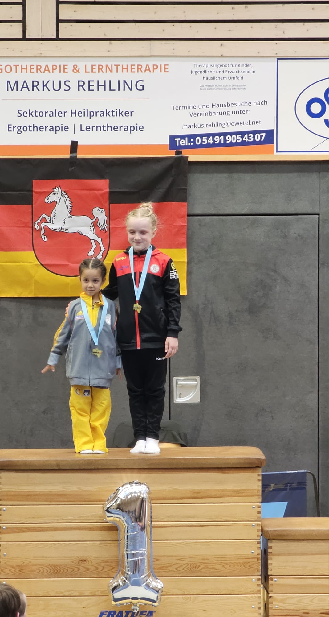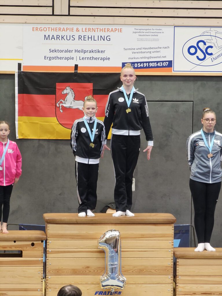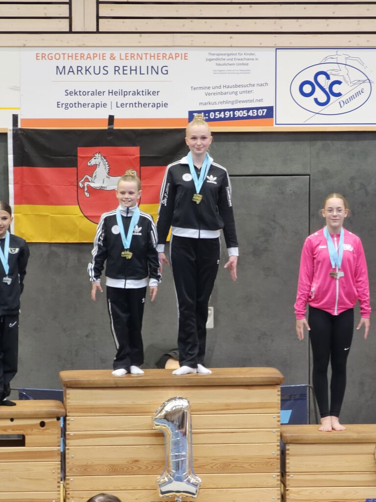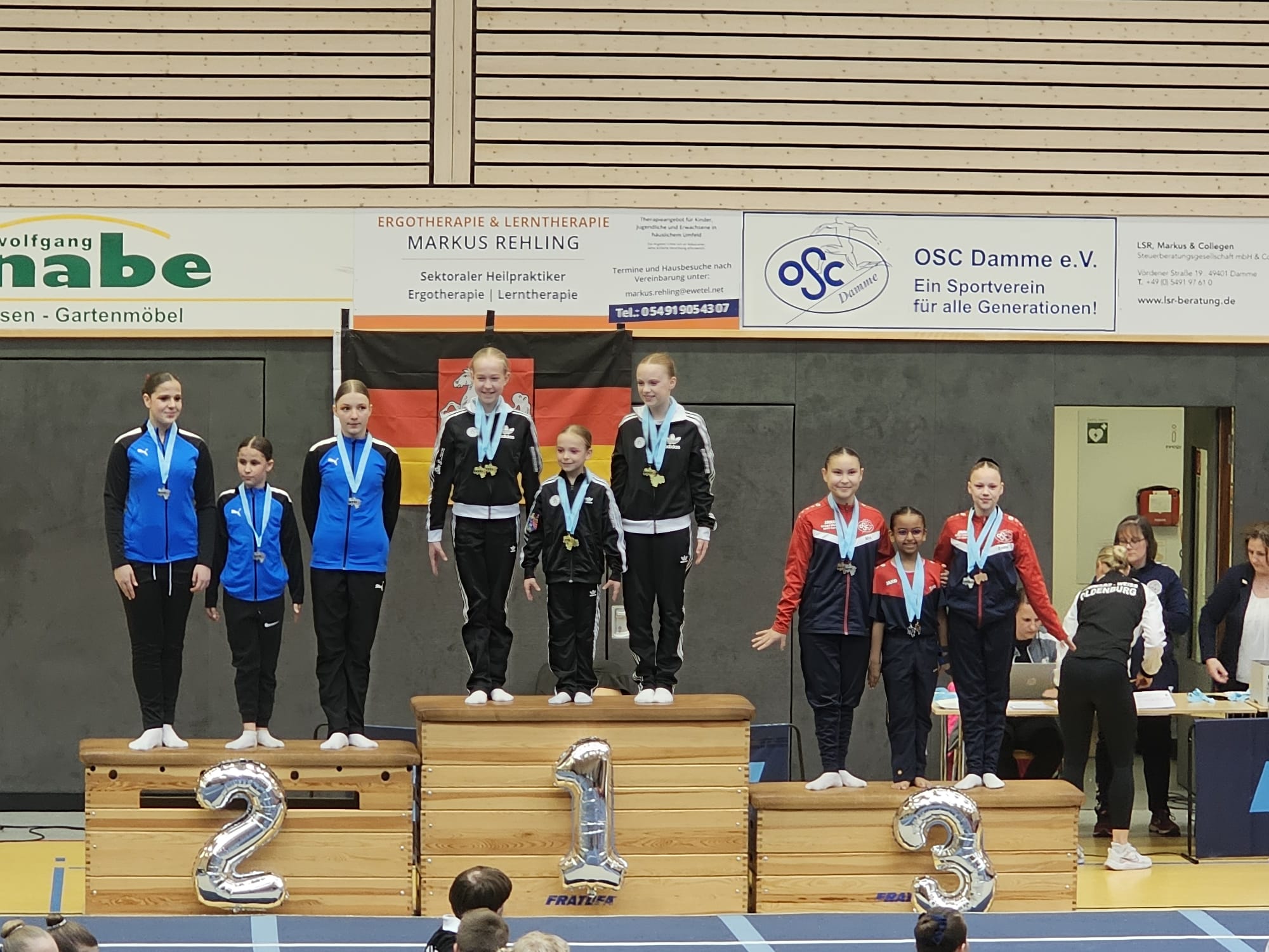Im Seniorenbereich kam es schließlich zum erwarteten Duell auf Topniveau mit dem VfL Weiße Elf Nordhorn. Während Nordhorn die Balance für sich entschied, konterte Wilhelmshaven in der Dynamik: Charlotte Kallai und Mira Spieß gewannen mit herausragenden 26,150 Punkten. Auch in der Gesamtwertung setzte sich der TSR durch und sicherte sich den Titelgewinn.